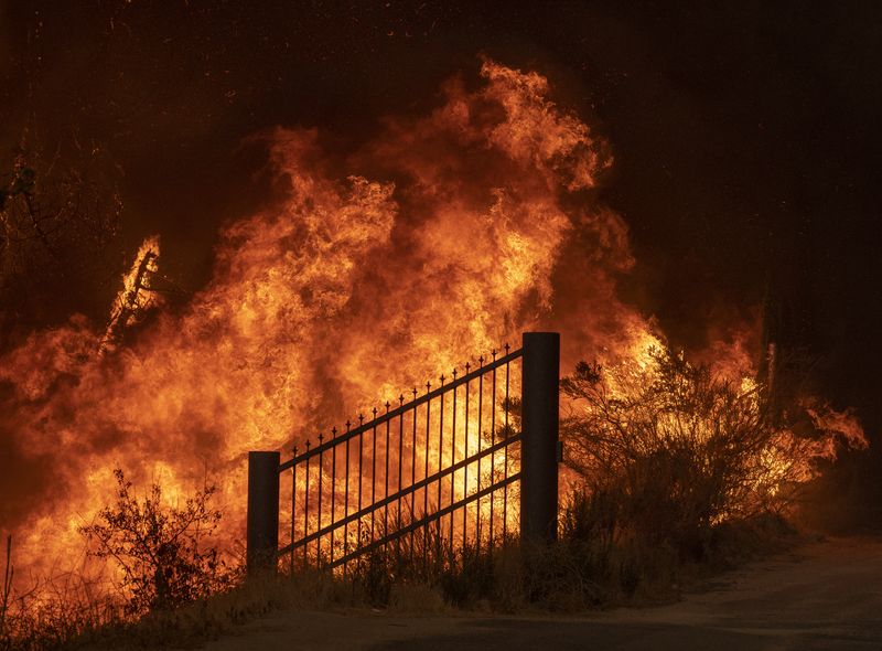 | Smoke from the Creek Fire envelopes trees in the Cascadel Woods community of Madera County, Calif., on Monday, Sept. 7, 2020. (AP Photo/Noah Berger) |